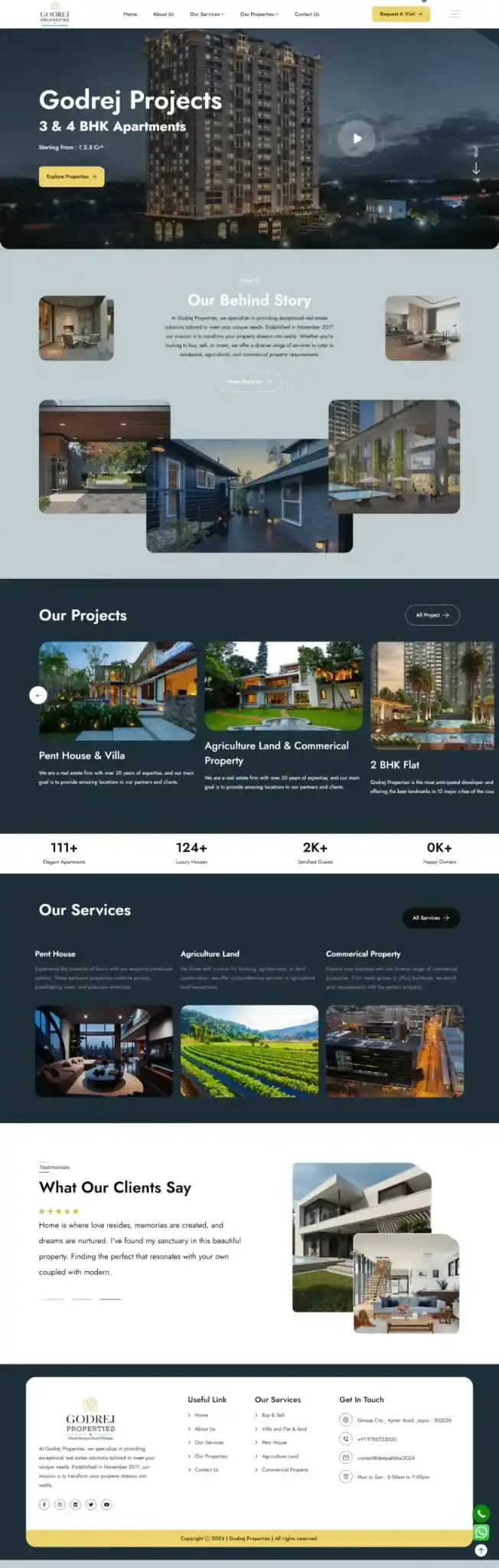 Our specialty at Godrej Properties is offering outstanding real estate solutions that are customized to your specific requirements. We were founded in November 2017 with the goal of making your real estate aspirations a reality. We provide a broad range of services to meet your needs for residential, commercial, and agricultural real estate, whether you’re looking to buy, sell, or invest.